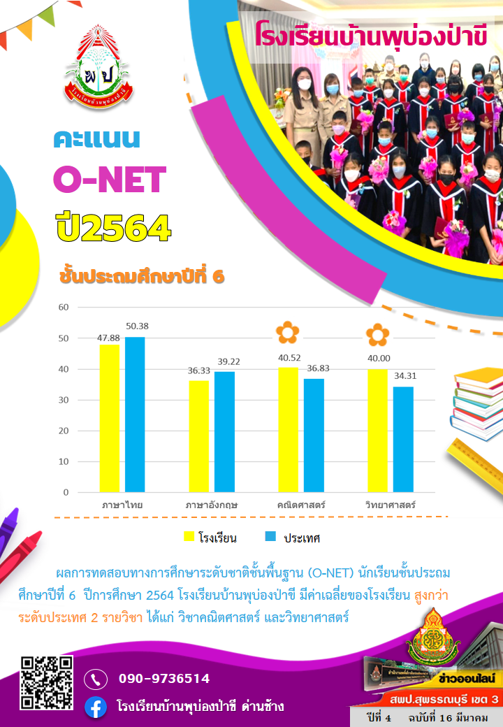ผลการทดสอบทางการศึกษาระดับชาติชั้นพื้นฐาน (O-NET)ป.6 ปีการศึกษา2564