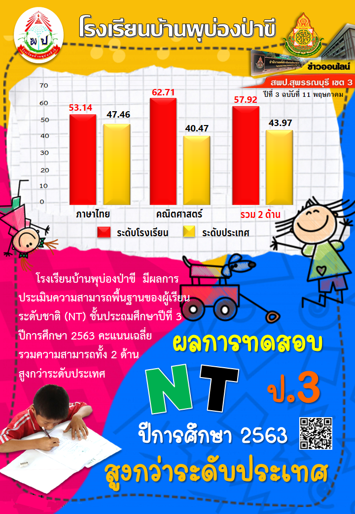 ผลการทดสอบ NT ป.3 คะแนนสูงกว่าระดับประเทศ ทั้ง 2 ด้าน